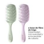 Cepillo desenredante elaborado con materiales naturales renovables procedentes de fibra de trigo, cáscara de arroz y polímero de resina.