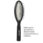 Cepillo neumático con púas de nylon y bolitas protectoras en las puntas, que facilita el desenredado y masajea el cuero cabelludo.