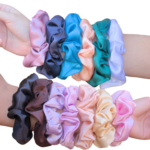 Simplemente recogé tu cabello como de costumbre y sujetalo con el scrunchie de seda elástica. Su goma interna mantiene el agarre sin generar tensión, lo que lo hace ideal para coletas, trenzas, moños o simplemente para mantener el pelo recogido al dormir. También es perfecto para complementar tus looks con un toque chic.