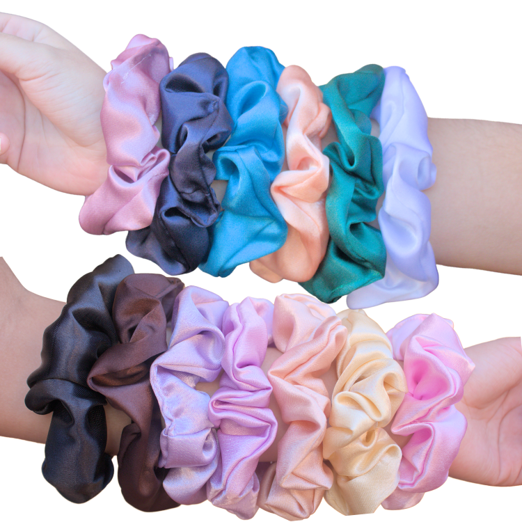 | Colores | Scrunchie Amarillo, Scrunchie Azul Marino, Scrunchie Blanco, Scrunchie Lila, Scrunchie Marrón, Scrunchie Negro, Scrunchie Rosa, Scrunchie Salmón, Scrunchie Turquesa, Scrunchie Verde Oscuro, Scrunchie Violeta |