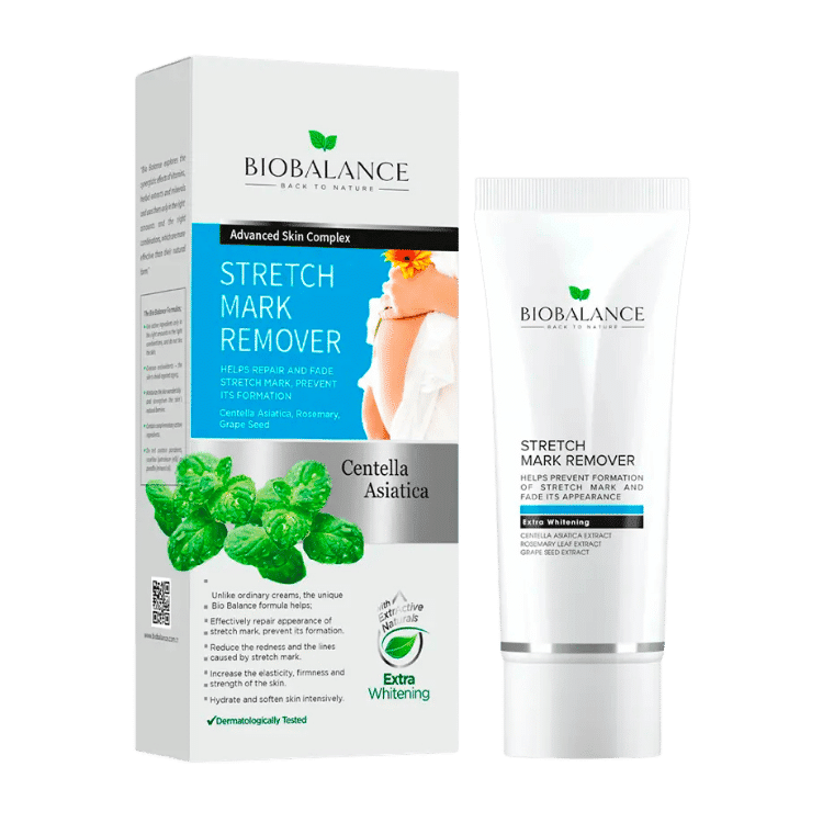 La crema para estrías Bio Balance ha sido desarrollada con una fórmula especializada para reparar, mejorar y prevenir las estrías, ya sean recientes o antiguas. Gracias a una poderosa combinación de ingredientes naturales como la centella asiática, el extracto de uva, manteca de karité y vitaminas esenciales, ayuda a restaurar la firmeza y elasticidad de la piel. Su aplicación regular estimula la producción de colágeno y elastina, mejorando notablemente la apariencia de las zonas afectadas, como abdomen, muslos, glúteos o senos.