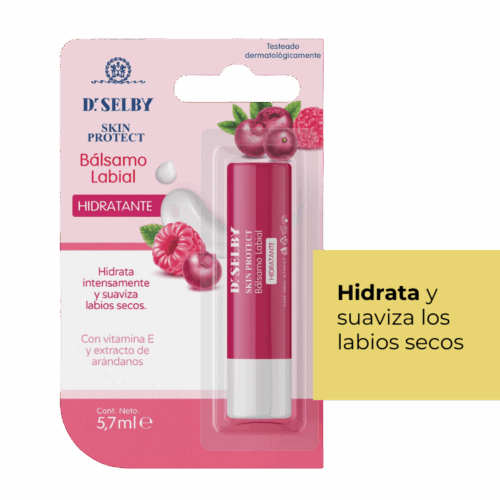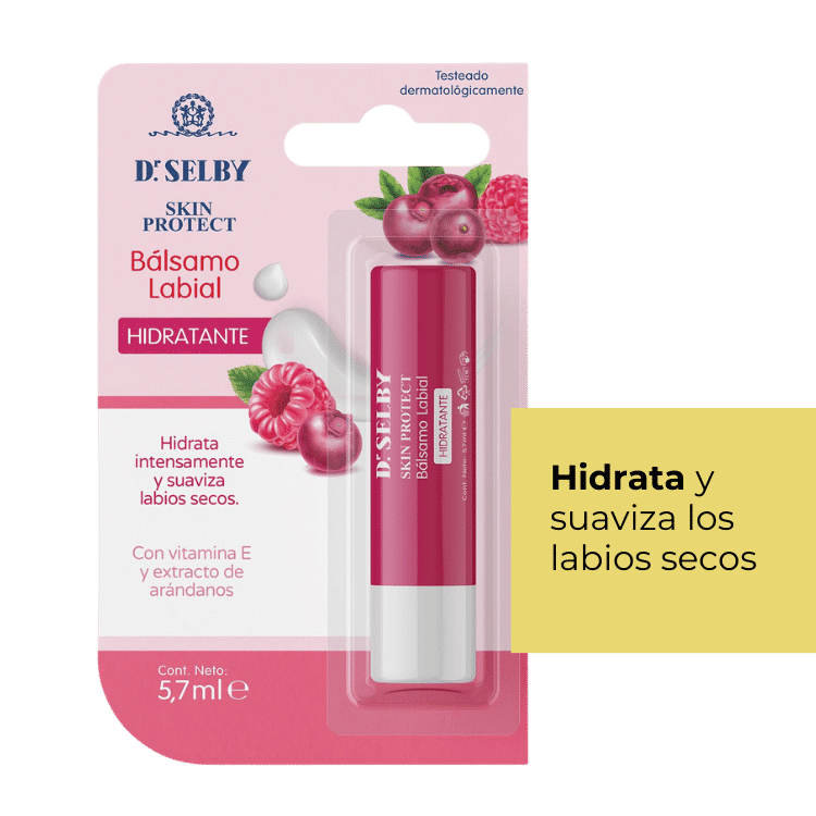 El Bálsamo Hidratante Dr. Selby Skin Protect está formulado para brindar una hidratación intensa y duradera a los labios secos y deshidratados. Su fórmula enriquecida con vitamina E y extracto de arándanos suaviza, protege y revitaliza los labios desde la primera aplicación. Ideal para todo tipo de piel y para quienes buscan suavidad y frescura con un toque frutal.