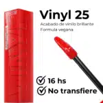 Con fórmula vegana de tinta líquida y su tecnología de vinilo fijo ha sido diseñado para conseguir 16 horas de color intenso y brillo.