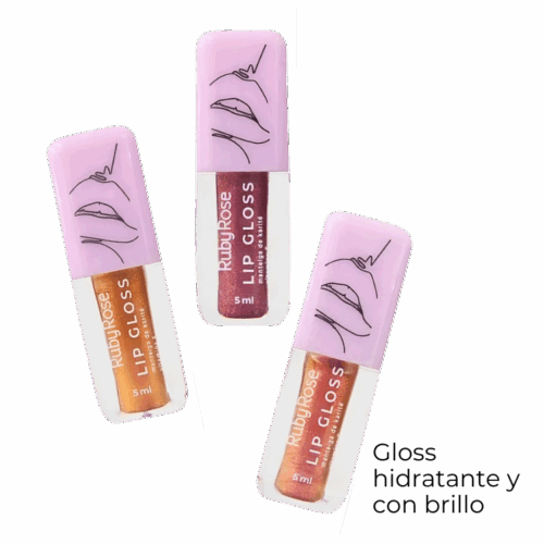 Lip gloss con glitter, brinda un brillo intenso y efecto mojado, además hidrata los labios.