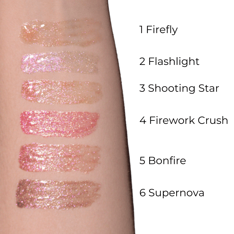Pigmentos y brillos perlados para un acabado luminoso.