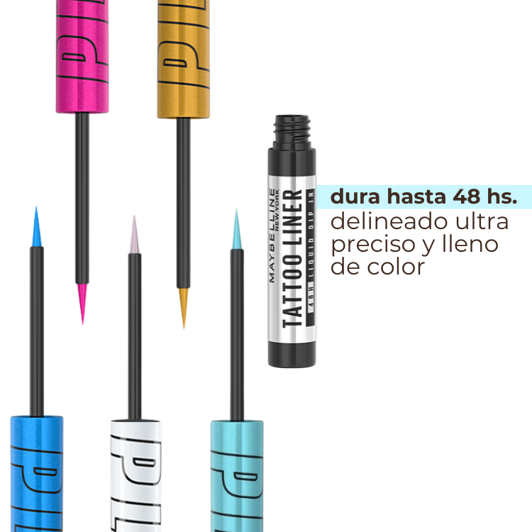 El Delineador Líquido Tattoo Liner Play de Maybelline New York es ideal para quienes buscan expresarse sin límites. Con un diseño moderno y colores vibrantes, ofrece una fórmula de alta duración y acabado impactante. Su aplicador de pincel fino permite trazos definidos y creativos, ideales tanto para delineados clásicos como artísticos. Perfecto para destacar en redes sociales y en eventos.