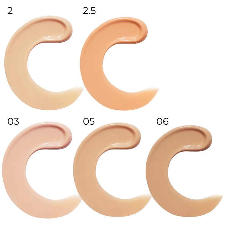 Agua, Glicerina, Dióxido de titanio, Dimeticona, Polímeros suavizantes, Talco, Ácido hialurónico (en algunos tonos), Fragancia.