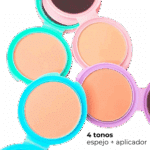 El Polvo Compacto D’Hermosa está disponible en varios tonos que se adaptan a diferentes tonos de piel. Cada tono viene en un estuche de color diferente (rosa, lila, celeste, verde menta), lo que facilita su identificación y le da un toque divertido a tu kit de maquillaje.