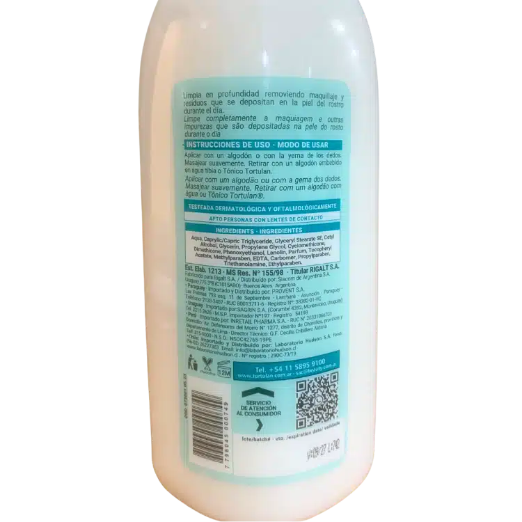 Leche de limpieza desmaquillante y limpiadora de uso diario de la marca Tortulan.