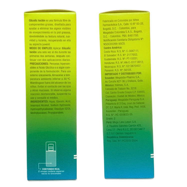 La loción de ácido glicólico es un exfoliante químico (AHA) que estimula la renovación celular, reduce las imperfecciones y proporciona a la piel más luminosidad y deja la apariencia de una piel más renovada, fresca y radiante.