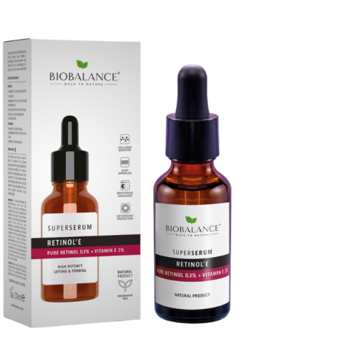El Suero Bio Balance Retinol 0,3% con Vitamina E es un tratamiento intensivo formulado para mejorar visiblemente los signos del envejecimiento, aclarar manchas y mejorar la textura de la piel. Gracias a su concentración equilibrada de retinol puro y antioxidantes, es ideal para pieles que buscan resultados sin irritación. Apto para todo tipo de pieles, incluso sensibles, con uso progresivo.